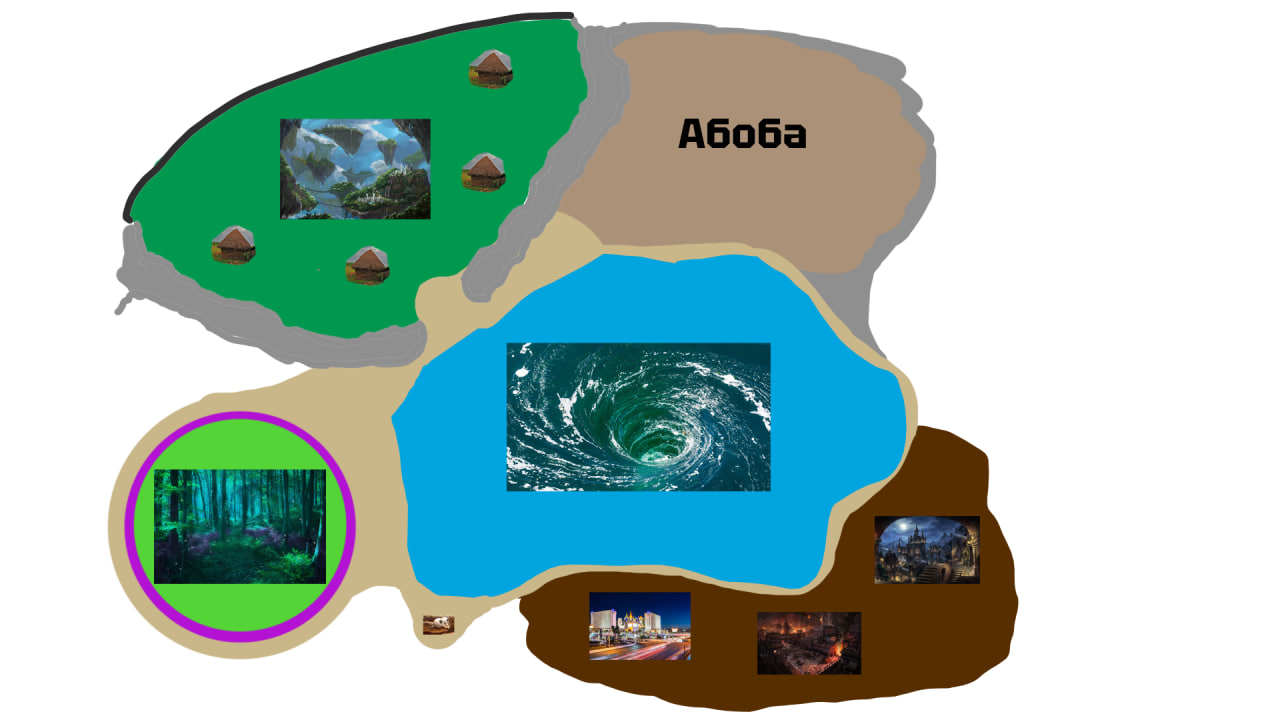 - Божевільні пустоші Озрака (Абоба) - регіон, який можна було б назвати вкрай мінливим. На відміну від інших регіонів, у цьому ніколи не припиняються війни між місцевими найбільшими фракціями, що об'єднують під своїм крилом найрізноманітніших створінь - від гоблінів, гноллів, і орків до кентаврів, голіафів, і навіть фірболгів. Місцеві землі ж є вкрай мінливими, що часто і ускладнює війни. Будь-якої миті будь-яка частина регіону може буквально на очах змінитися. На короткий термін кам'яна пустка може раптово перетворитися на оазис, а оазис може перетворитися на вулканічні гори, оточені лавовими озерами. Місцеві фракції воліють не будувати осідлі міста через те, що безперервні війни і ландшафтні зміни руйнують все вкрай швидко, а тому всі міста швидше є мобільними кластерами, що можуть у найкоротші терміни зібратися і переїхати на далекі відстані. І все ж таки, не все погано в цих місцях. В Божевільні пустоші Озрака часто приходять різні паломники, у тому числі чарівники та чародії, що шукають розломи магічної енергії, друїди шукають унікальну флору та фауну для даного регіону, та інші шукачі унікальних товарів та особливостей місцевих земель.